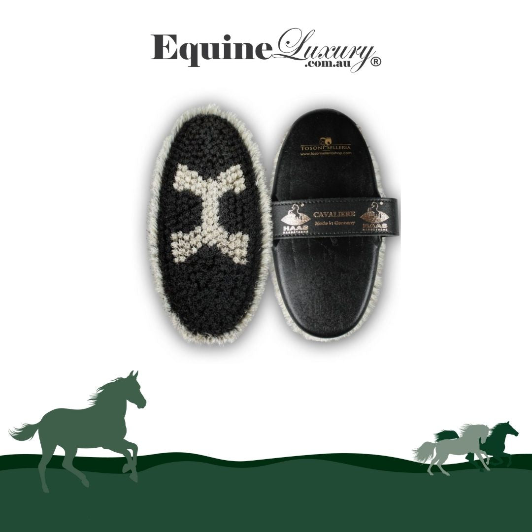 HAAS Cavaliere Body Brush is a pure, robust mane and tail horsehair brush. The materials are specifically mixed for this grooming brush. The bristle border is longer, for optimum cleaning results. The strength and elasticity of this select mixture ensure a brush of high quality. A guarantee for a shiny horse coat