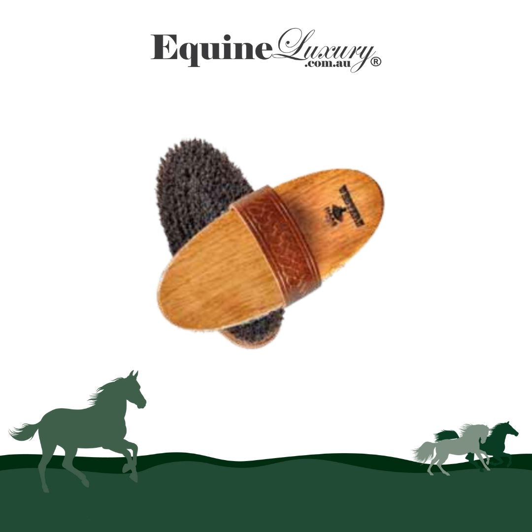 Haas Western Brush The oiled wooden back and the leather strap are made for our WESTERN friends! The natural pig bristles make for a perfect groom and shine.